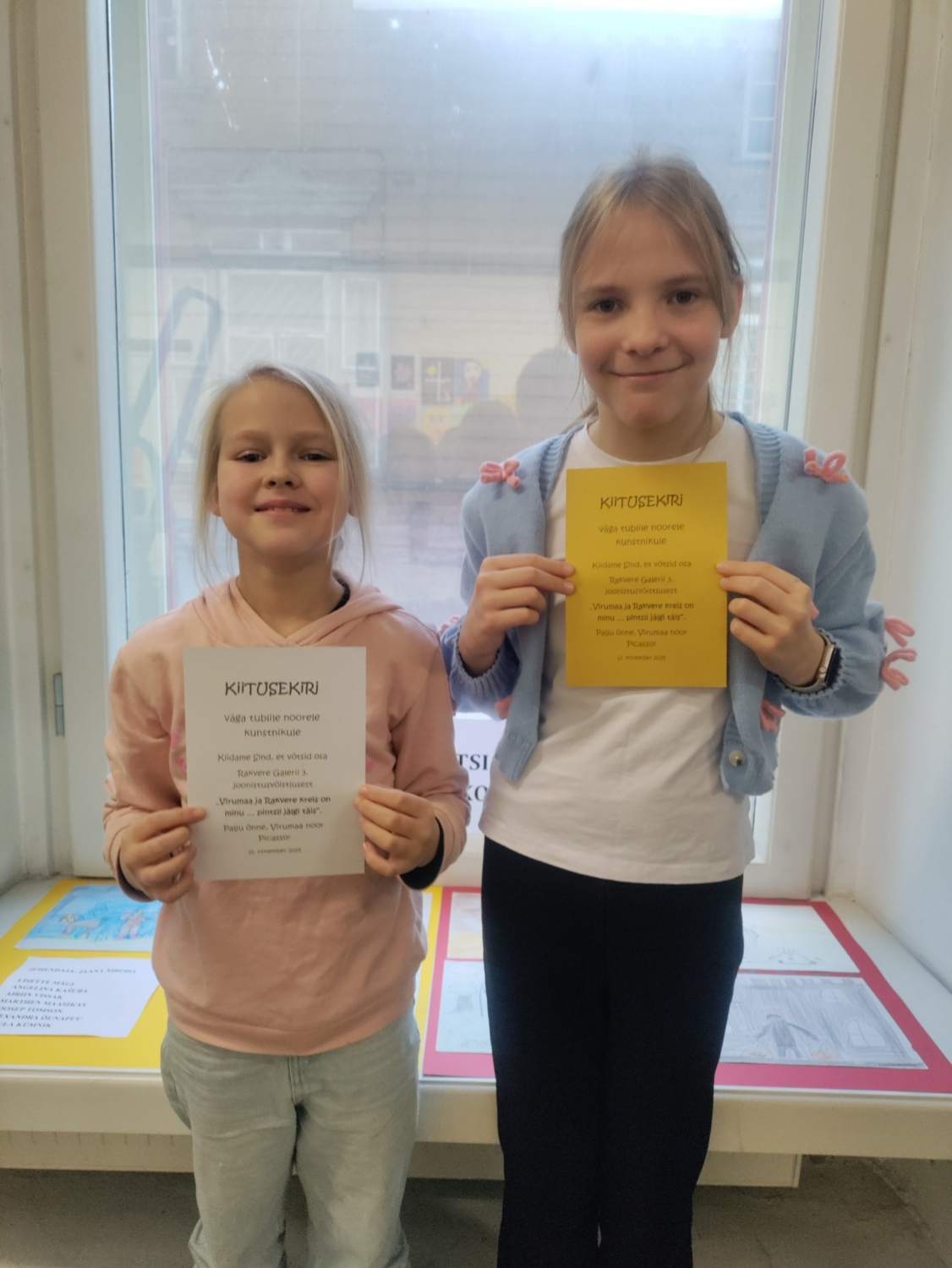 Rakvere Galerii kutsus sel sügisel lapsi avastama kunsti võlu joonistusvõistlusel „Virumaa ja Rakvere kreis on minu pintsli jälgi täis“. Selle aasta teema oli rõõmsalt lihtne – „Mulle meeldib“. Meie kooli noored kunstnikud särasid konkursil eriliselt: Alexandra Õunapuu (3. klass) kes pälvis ka kuldse kiituskirja ja Airiin Vissak (2. klass). Preemiaks said lapsed kunstitarbeid ja tulevase unustamatu reisi Kumu kunstimuuseumi, kus inspiratsioon jätkub ka edaspidisteks töödeks!